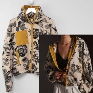 Anthropologie Daily Practice Fleece Jacket Floral Cream Black Yellow Size Medium