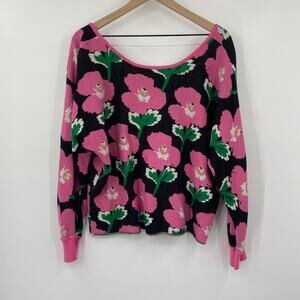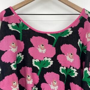 Anthropologie Daily Practice Hazy Daze Sweater Patterned Hibiscus Pink Black Green