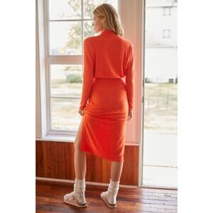 Anthropologie Daily Practice Orange Draped Soft Cowl Neck Midi Dress Size XS