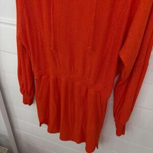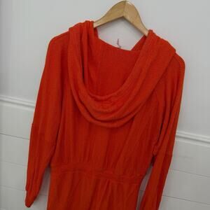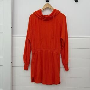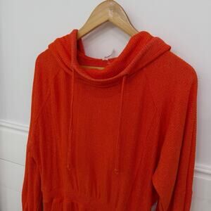 Anthropologie Daily Practice Orange Waffle Knit Hooded Long Sleeve Dress M