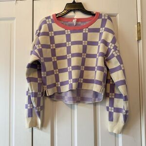 Anthropologie Daily Practice Plaid Purple & White Long-Sleeve Cropped Sweater M