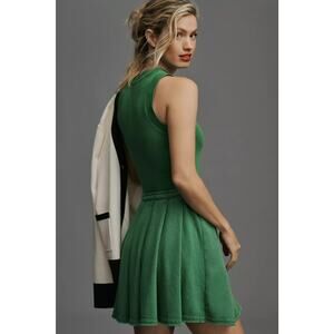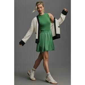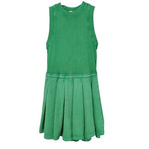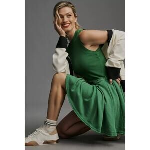 Anthropologie Daily Practice Pleated Mini Dress in Kelly Green. Size S / Small. Features round neck, sleeveless, pleated skirt, pullover style, and mini length. Style OB1827843. Rib: 97% Cotton, 3% Elastane. Terry: 54% Cotton, 46% Polyester. Excellent pre-owned condition, no flaws.