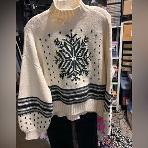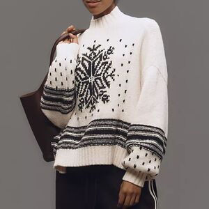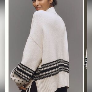 Anthropologie Daily Practice Relaxed Graphic Print Sweater Ivory Combo