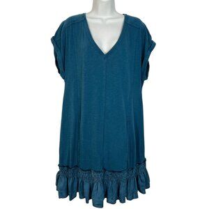 Anthropologie Daily Practice Solana Ruffled Tunic Dress Mini Teal Blue Medium