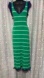 Chic green midi dress with white stripes. Features navy accents. Perfect for casual outings.
