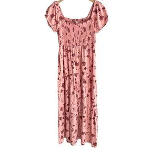 Anthropologie Daily Practice Tiered Maxi Dress Lounge Pink Floral