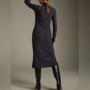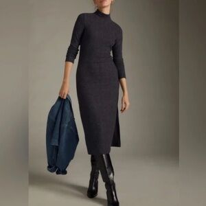 Anthropologie Daily Practice Turtleneck Side Slit Dress. Size medium. Gray ribbed midi dress. Very good preowned condition.
