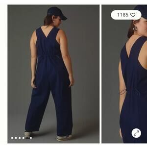 Anthropologie Daily Practice Zip Front Jumpsuit Navy Blue Sleeveless XS. V neckline. Side slant pockets. Wide legs. Zip front. Perfect for layering. Athleisure, athletic, boho.