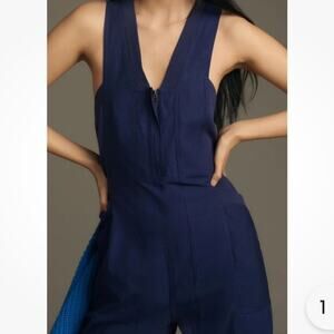 Anthropologie Daily Practice Zip Front Jumpsuit Navy Blue Sleeveless XS