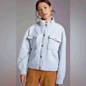 Anthropologie Daily Practice fleece bomber jacket light blue size XL women’s