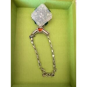 NWOT by Pam Hiran. A jumble of colors and textures comes together in an unexpected pattern that takes the statement necklace into a new realm. Impeccably designed and completely handcrafted, this piece mixes moonstone, agate, brass and acrylic stones in an elevated medallion-style layout---and looks amazing while doing it. Lobster claw clasp. Length 18", with pendant length 4.25".