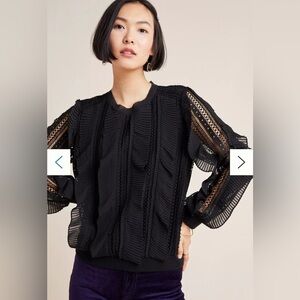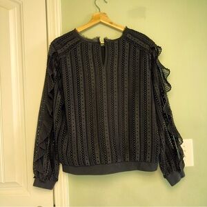 Anthropologie Daniel Rainn Black Lace Pleated Ruffle Blouse Size L
