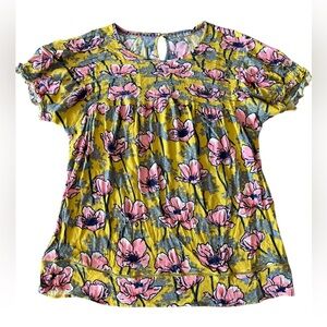 Anthropologie Daniel Rainn Top Olivette Pintucked Floral Flowy Tunic Blouse 2X