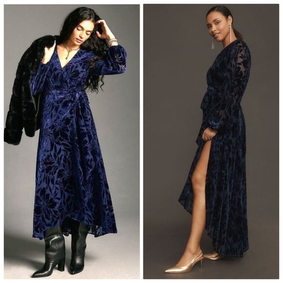 Anthropologie Daniella Navy Velvet Wrap Dress Size M