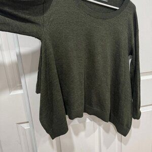 Anthropologie Dark Green Boxy Cropped Merino Wool Pullover Sweater Women’s M