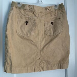 Elevate your wardrobe with this stylish tan button-front skirt. Perfect for any occasion, this skirt offers both comfort and elegance. Front buttons, pockets, travel, resort, casual, daily, party