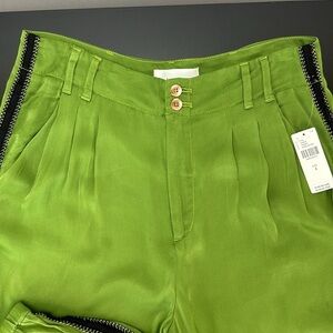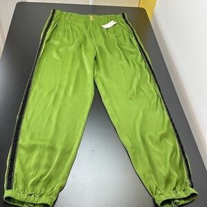 Anthropologie Deandra Green Tuxedo Satin Joggers 4 Ankle Zip Viscose High Rise