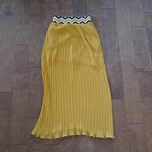 Anthropologie Dear Creatures Maxi Skirt Women Small Mustard Pleated High Waisted