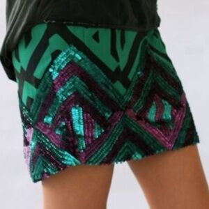 Add a pop of color to your wardrobe with this stunning green and purple sequin skirt. Perfect for a night out or a special occasion.