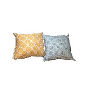 Anthropologie Decorative Pillow Set - Double-Sided Patterned Cushions Blue & Yel