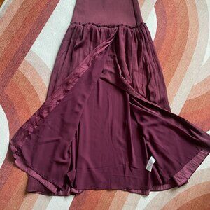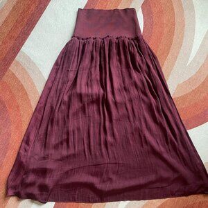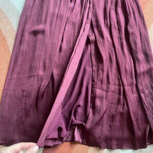 Anthropologie Deep Burgundy A-Line Skirt with Open Front Slit
