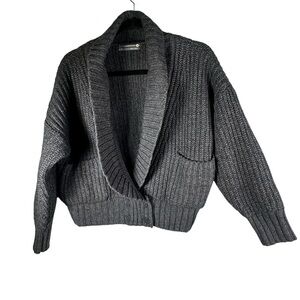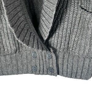 Anthropologie Deep V Cardigan Sweater Button Gray Carbon Oversized Chunky Knit - In gently worn condition. Wool blend. Front patch pockets, buttons at waist. Please see photos for details & measurements. Size Small
