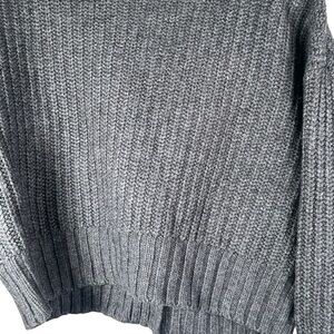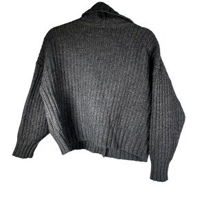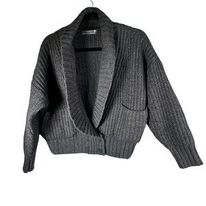 Anthropologie Deep V Cardigan Sweater Button Gray Carbon Oversized Chunky Knit