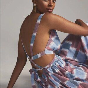 Make a statement in this elegant midi dress from Anthropologie. The deep V neckline adds a sophisticated, flattering touch, while the midi length keeps it versatile for many occasions — weddings, cocktail events, formal dinners, or garden parties. The quality and design typical of Anthropologie make it a valued find.
