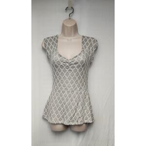 Anthropologie Delatta Criss Cross Cutout Back Lace Sleeveless Blouse Top Medium Gray/Cream MSRP 68.00 NWT