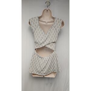 Anthropologie Delatta Criss Cross Cutout Back Lace Blouse Size M Gray/Cream