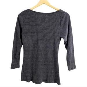 Anthropologie Deletta Black & Gray Striped Ophelia Ruffle Lace Knit Top, Size Medium