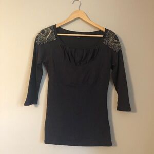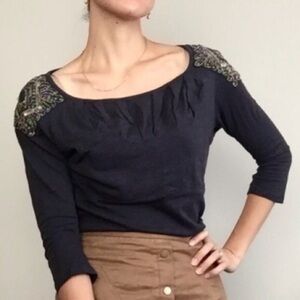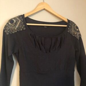 Anthropologie Deletta Corinthian Grey Beaded Top