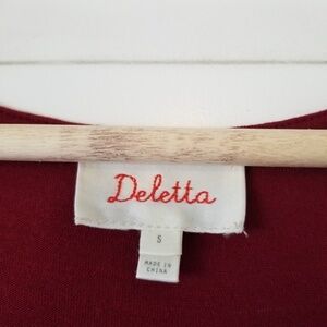 Anthropologie Deletta Empire Waist V Neck Red Short Sleeve Blouse Top Size Small