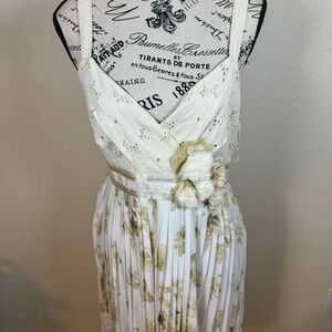 Anthropologie Deletta Floral Neutral Tea and Sweets Pleated Knee Lgth Dress Med