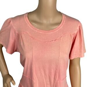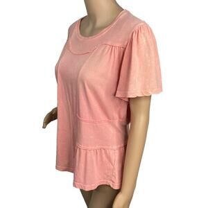 Anthropologie Deletta Peach Pink Acid Wash Flutter Sleeve Peplum Tee Top SZ M