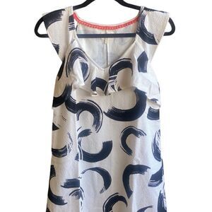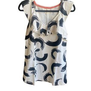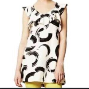 Anthropologie brush stroke tunic featuring a ruffled neckline and black and white print in a near perfect condition.