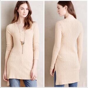 Anthropologie Deletta Tan Ribbed Tunic Top Women's Size XS