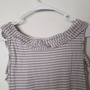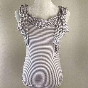 Anthropologie Deletta Tan & White Nautical Striped Tank w/Pleated Details Size S