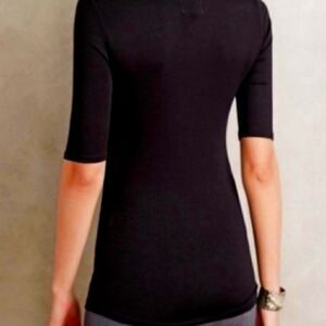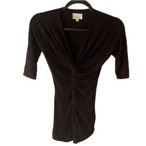 Anthropologie Deletta V Neck Wrap Top with Short Sleeves Sz XSMALL Black