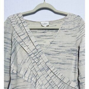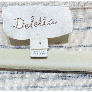 Anthropologie Deletta Womens Medium Ivory Blue Pleated Top V Neck Stretch