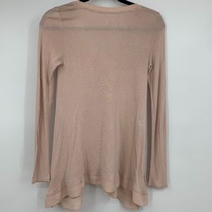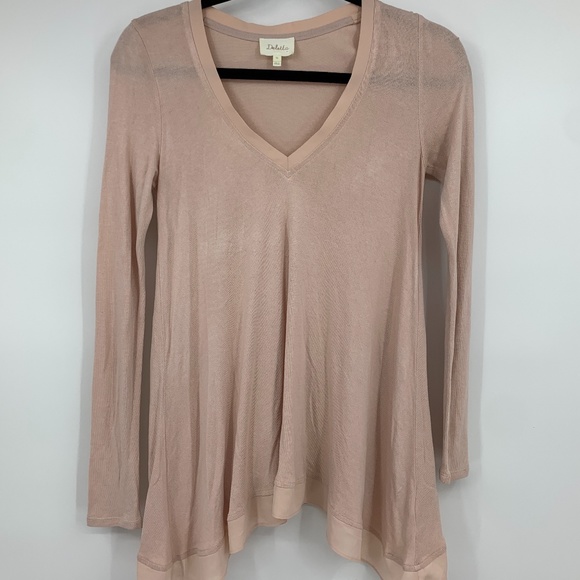 Anthropologie Deletta XS blouse knit v neck trimmed asymmetrical hem pink stretch
