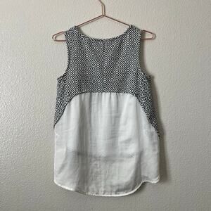 Anthropologie Deletta diamond geometrical jacquard twofer layered tank top black white ivory, Size S. Good used condition.