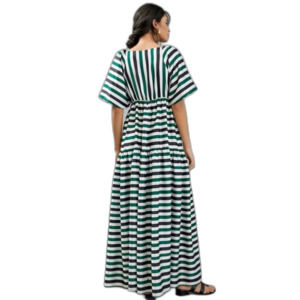 Brand new with tags. No flaws. Bold stripes and a deep v-neck imbue this maxi dress with tantalizing, twirl-worthy flair - throw it on with dainty jewelry and sandals for an ensemble that's sure to earn you compliments. Lovely lightweight material, beautiful flow to it without feeling heavy like most gowns would.