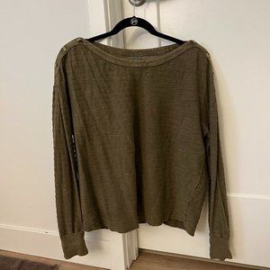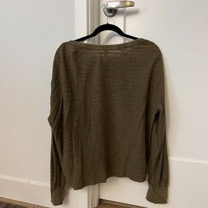 Anthropologie olive green long sleeve with button detailing on the shoulders. Good condition. Size small. Lightweight and cozy.