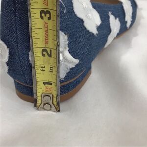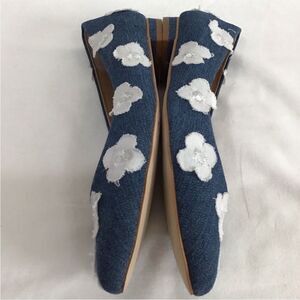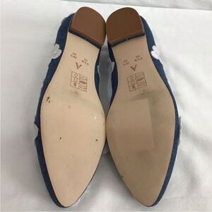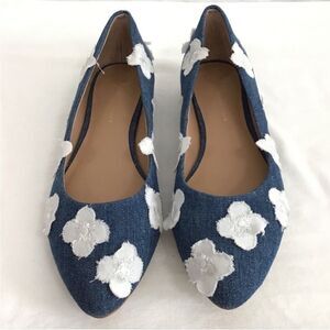 Anthropologie Denim Floral Appliqué Point Toe Ballet Flat Shoes Jean Size 8 1/2