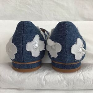 Anthropologie Blue Denim Floral Appliqué Pointed Toe Ballet Flat