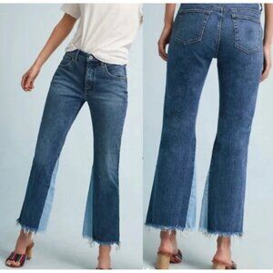 Anthropologie Denim Pilcro Two Tone Raw Hem Flare Cropped Jeans in Size 28