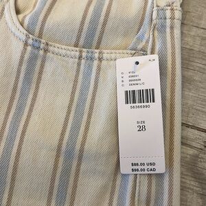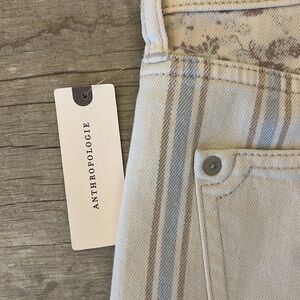 Anthropologie Denim Shorts 28 Pilcro Slim Boyfriend Striped Cream High Rise NWT