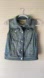Stylish denim vest. Features button closure. Sleeveless design. Perfect for layering.