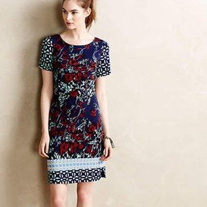Anthropologie Deveney Ponte Shift Tracy Reese Colorful Knit Dress Blue Floral